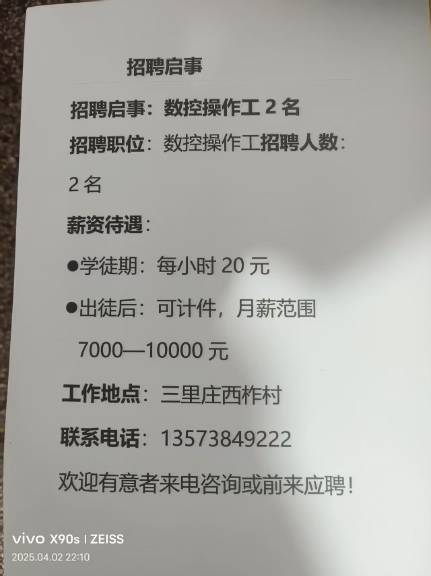 - 10000元/招聘數(shù)控操作車加工師傅