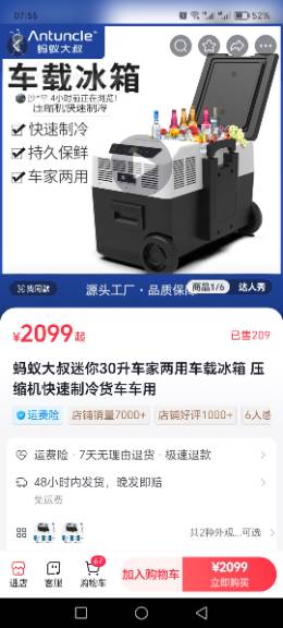 物品名稱及描述:螞蟻大叔30L車載冰箱實惠價出,可家用車用戶外露營,支持廠家查驗,原價2099,現(xiàn)1200元出售。